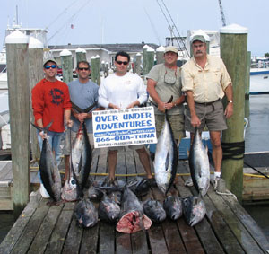 OU Operates one of the largest and nicest boats in the Virginia Fishing Charters Fleet and it is loaded with top notch tackle for doing everything from live-baiting Giant Bluefin to sight casting for Cobia. The LOW PROFILE, is a 55′ Custom Carolina built sportfish, with TWIN Caterpillar 800 horse power engines. The fully finished off salon, is fully air conditioned and in “live-aboard” condition, with two staterooms, galley and head/shower.
